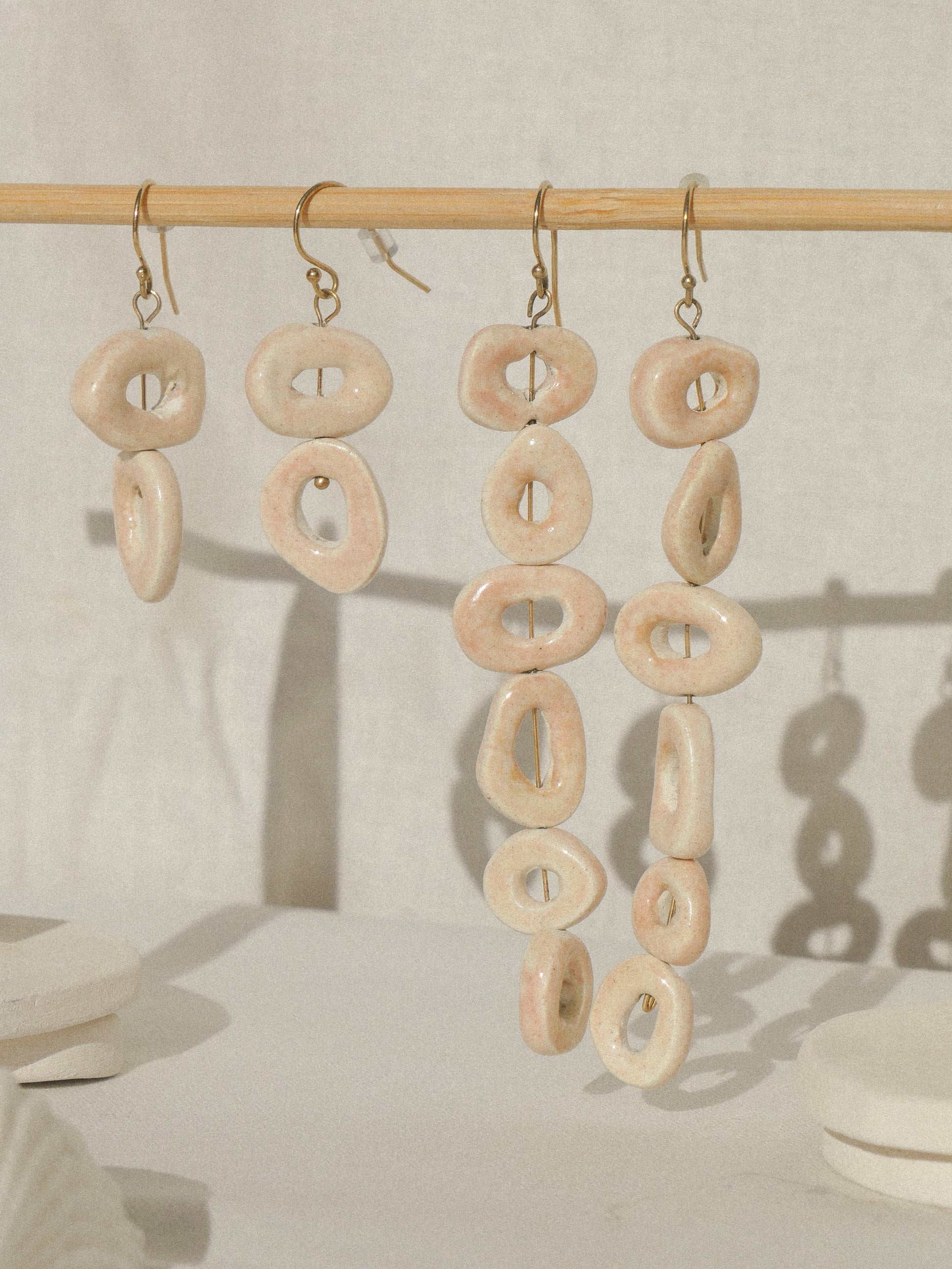 Composées de pièces en céramique couleur crème et d'apprêts en Gold Filled 14k (hypoallergénique).